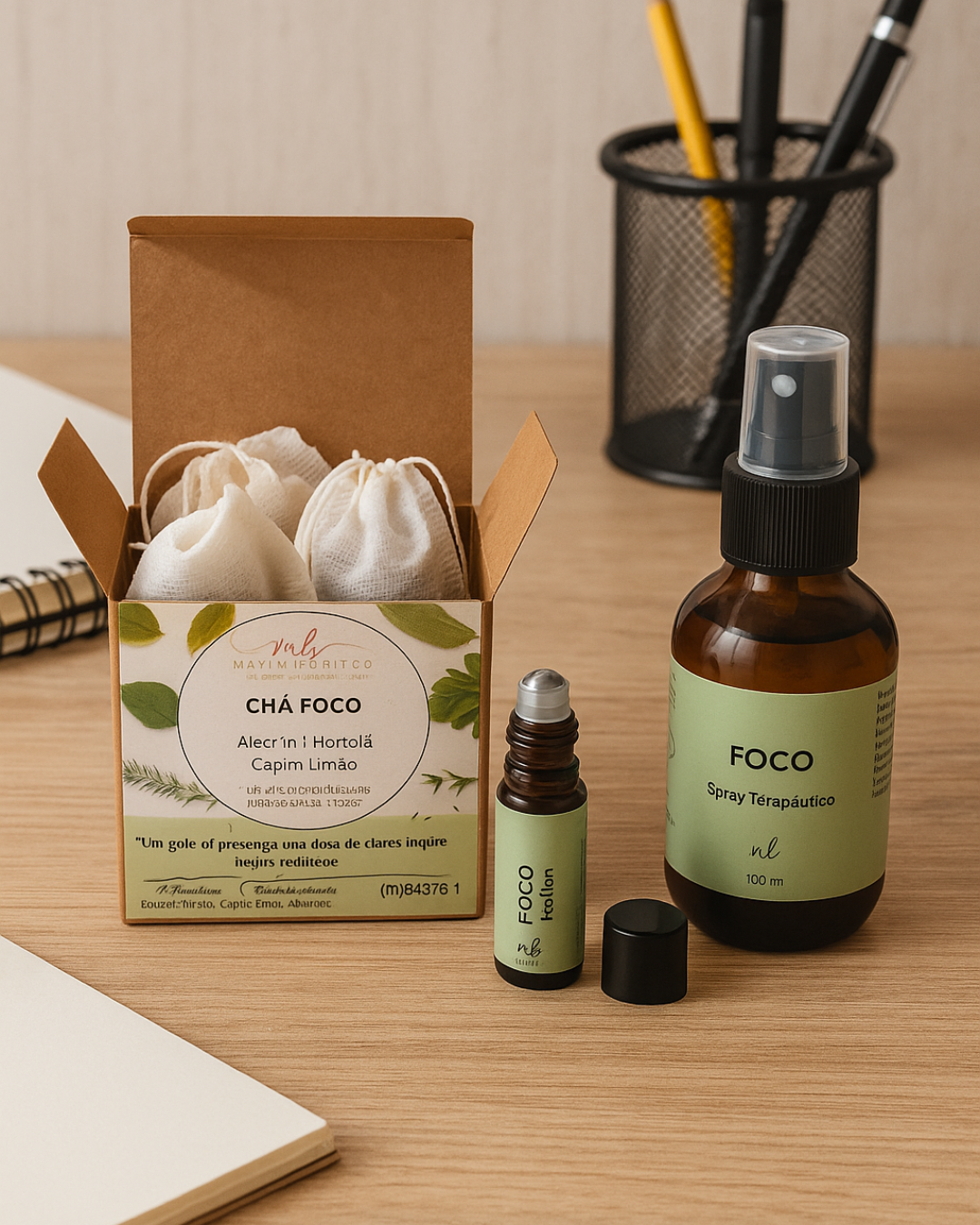 O Kit Foco foi criado para acompanhar seus momentos de produtividade e concentração, trazendo leveza e vitalidade à rotina.